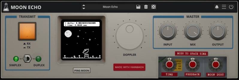 Reprenant le principe du rebond, Hainbach et Audiothing ont donc conçu un plugin qui modélise de manière très convaincante la dégradation naturelle d’un signal qui fait l’aller-retour Terre-Lune (770 000 km): atténuation, effet Doppler dû au mouvement relatif, ajout de bruit et d’artefacts...